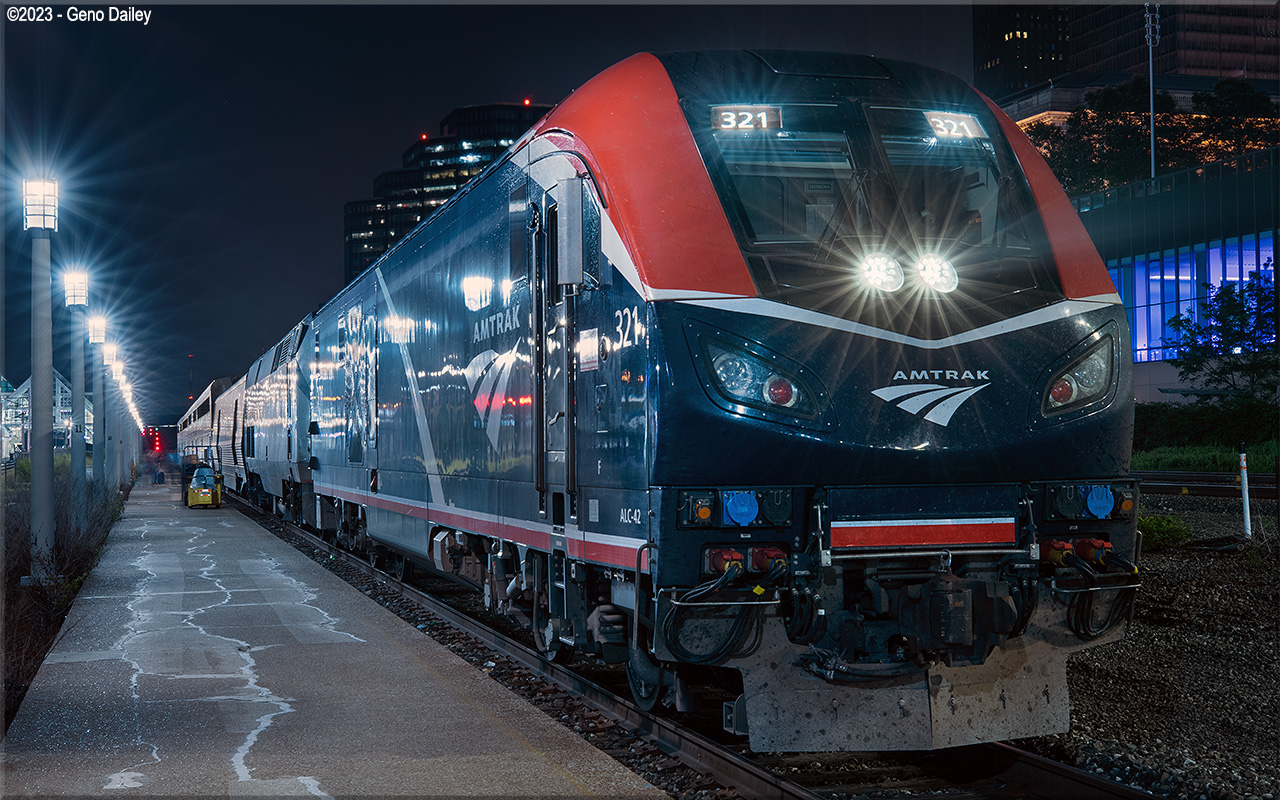 Built by Siemens Mobility in March 2023 and numbered 321. This series of locomotives is a long-distance variant of the Siemens SC-44 Charger used on state-sponsored corridor trains. Historical information about this locomotive provided by www.amtrakbythenumbers.com. |