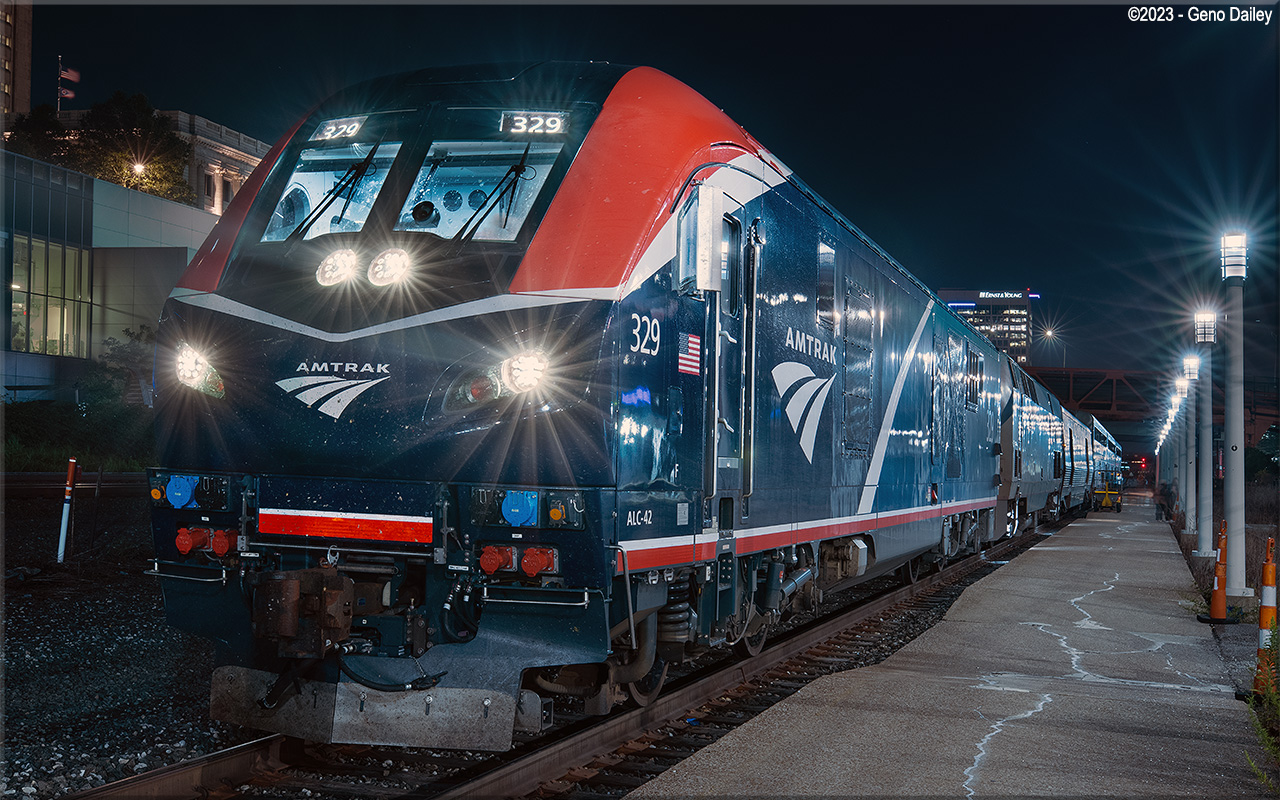 Built by Siemens Mobility in April 2023 and numbered 329. This series of locomotives is a long-distance variant of the Siemens SC-44 Charger used on state-sponsored corridor trains. Historical information about this locomotive provided by www.amtrakbythenumbers.com. |