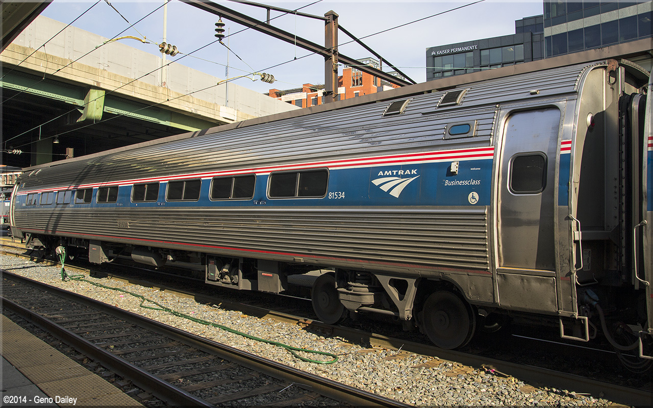 Built as a long-distance coach in September 1976 with 60 seats and 2 dressing rooms and numbered 21842. Refurbished for Metroliner Service in October 1983 and renumbered 21924. Trainline-equipped for push-pull operation in April 1990 and renumbered 44924. Rebuilt with ADA-compliant restrooms in July 1996 and renumbered 44703. Converted to a Capstone Business Class coach in April 2007 and renumbered 81534. This car is one of a select few Amfleet I Coaches to have had 5 different car numbers in its career. Historical information about this car provided by www.amtrakbythenumbers.com. |