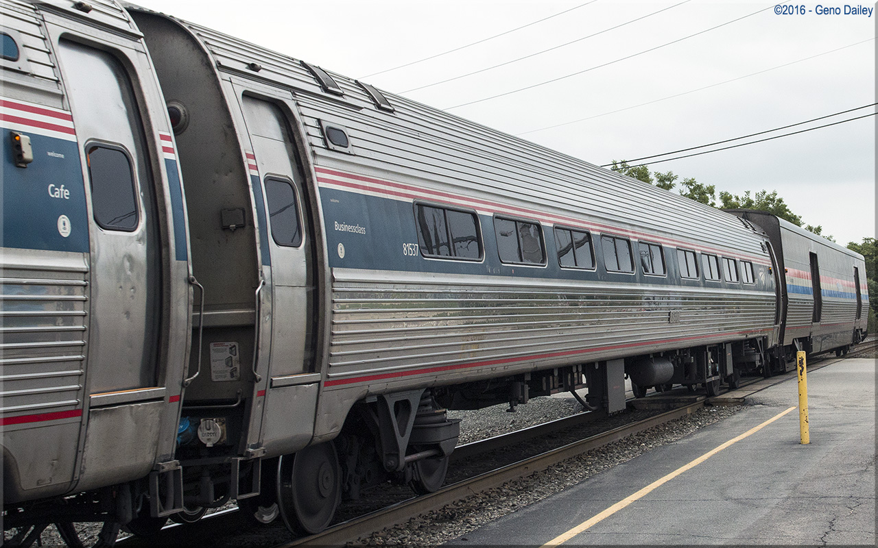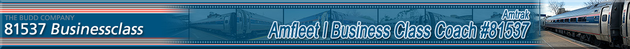 Built as a standard 84 seat coach in January 1976 and numbered 21092. Refurbished with an ADA-compliant restroom in March 2003 and renumbered 21792. Trainline-equipped for push-pull operation and converted to a Business Class car with 62 seats in April 2007 and renumbered 81537. Historical information about this car provided by www.amtrakbythenumbers.com. |