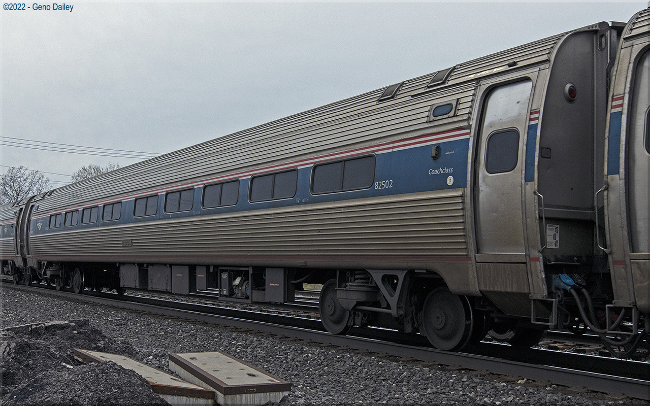 Built as a standard 84 seat coach in December 1976 and numbered 21220. Trainline-equipped for push-pull operation in August 1987 and renumbered 44220. Refurbished with ADA-compliant restrooms in August 1996 and renumbered 44664. Converted to a Capstone coach with 72 seats in November 1999 and renumbered 82502. Historical information about this car provided by www.amtrakbythenumbers.com. |