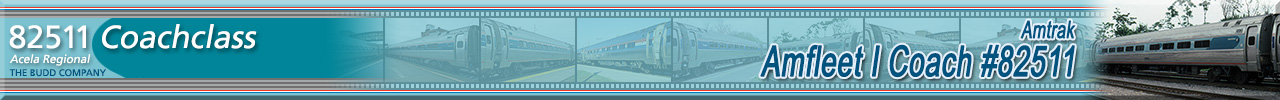 Built as a standard 84 seat coach in February 1976 and numbered 21113. Trainline-equipped for push-pull operation in October 1988 and renumbered 44113. Refurbished with ADA-compliant restrooms in July 1996 and renumbered 44661. Converted to a Capstone car with 72 seats in August 2000 and renumbered 82511. Historical information about this car provided by www.amtrakbythenumbers.com. |