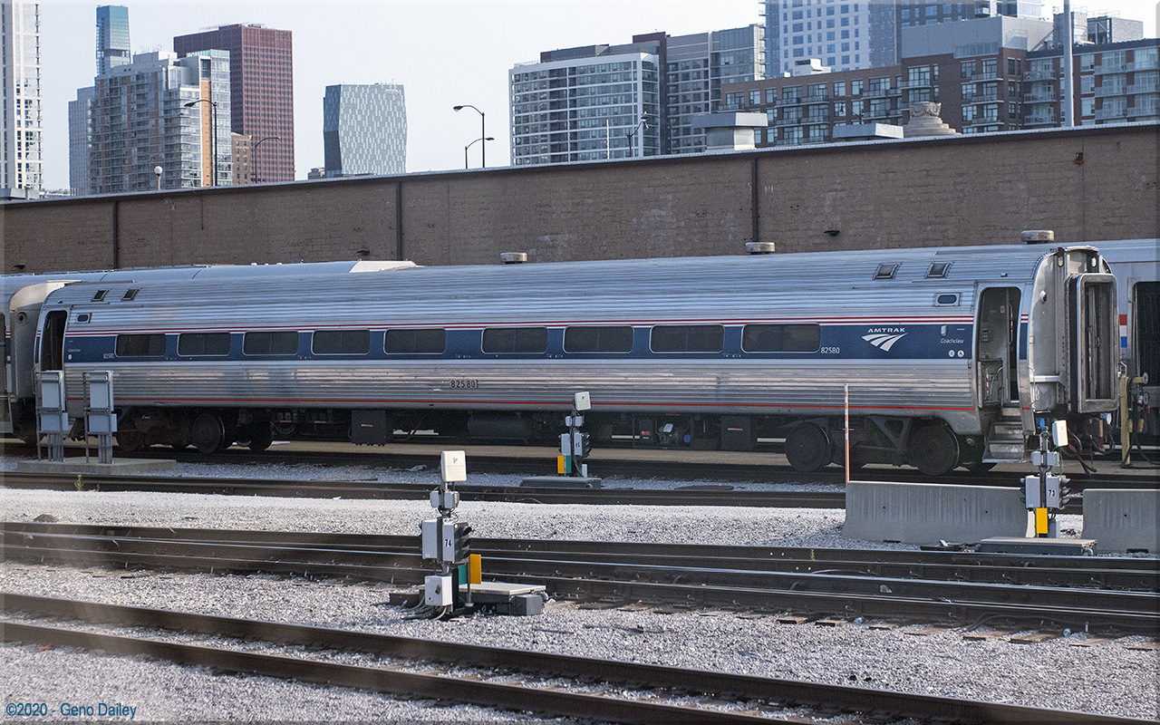 Built as a standard 84-seat coach February 1976 and numbered 21107. Trainline-equipped for push-pull operation in July 1987 and renumbered 44107. Refurbished with an ADA-compliant restroom in May 1997 and renumbered 44600. Converted to a Capstone coach with 72 seats in August 2005 and renumbered 82580. Historical information about this car provided by www.amtrakbythenumbers.com. |