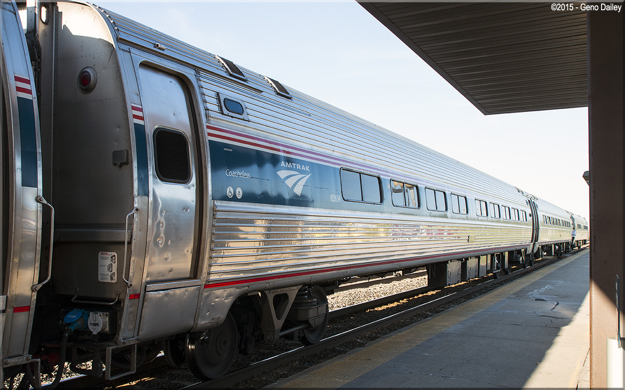 Built as a long-distance coach with 60 seats and 2 dressing rooms in May 1977 and numbered 21881. Converted to a standard 84 seat coach in November 1988 and renumbered 21281. Trainline-equipped for push-pull operation and converted to a Capstone car with 72 seats in November 2006 and renumbered 82634. Historical information about this car provided by www.amtrakbythenumbers.com. |