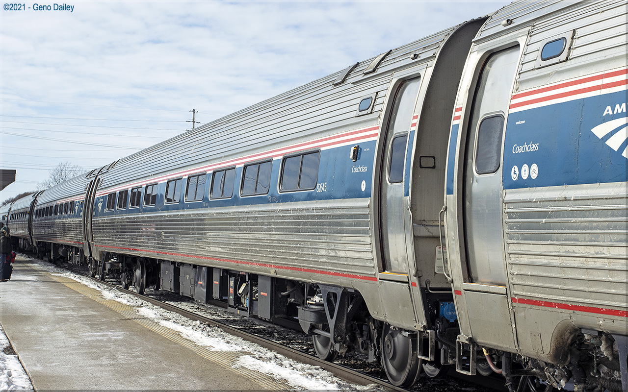 Built as a standard 84 seat coach in November 1976 and numbered 21206. Trainline-equipped for push-pull operation in January 1989 and renumbered 44206. Converted to a Capstone coach with 72 seats in March 2007 and renumbered 82645. Historical information about this car provided by www.amtrakbythenumbers.com. |