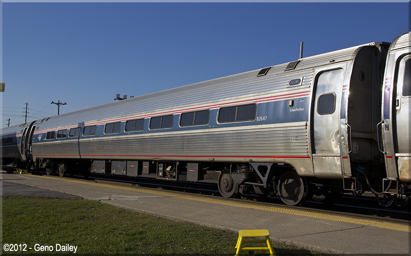 Built as a standard 84 seat coach in August 1975 and numbered 21025. Most recently trainline-equipped for push-pull operation refurbished as a Capstone car with 72 seats in April 2007 and renumbered 82647. Information about the history of this car provided by