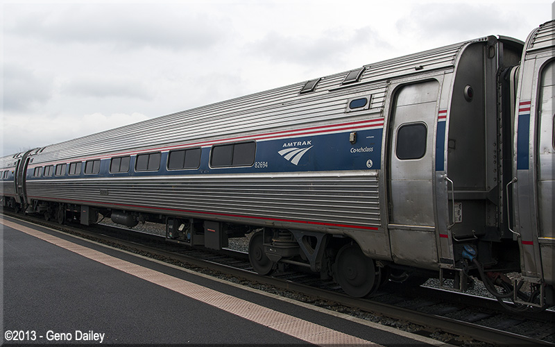 Built as a standard 84 seat coach in January 1976 and numbered 21002. Rebuilt as a Capstone car with 72 seats in July 1999 and renumbered 82008. Trainline-equipped for push-pull service in October 2007 and renumbered 82694. Information about the history of this car provided by