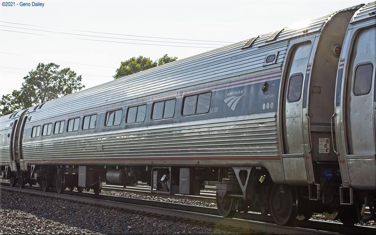 Built as a standard 84 seat coach in July 1975 and numbered 20122. Converted to a Capstone coach with 72 seats and trainline-equipped for push-pull operation in February 2008 and renumbered 82709. Historical information about this car provided by www.amtrakbythenumbers.com. |