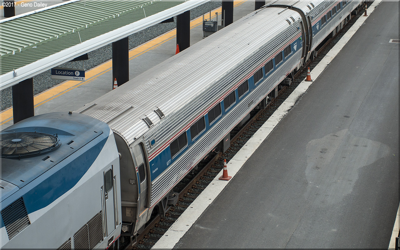 Built as a standard 84 seat coach in November 1975 and numbered 21065. Converted to a Capstone coach with 72 seats and trainline-equipped for push-pull operation in September 2009 and renumbered 82771. Historical information about this car provided by www.amtrakbythenumbers.com. |
