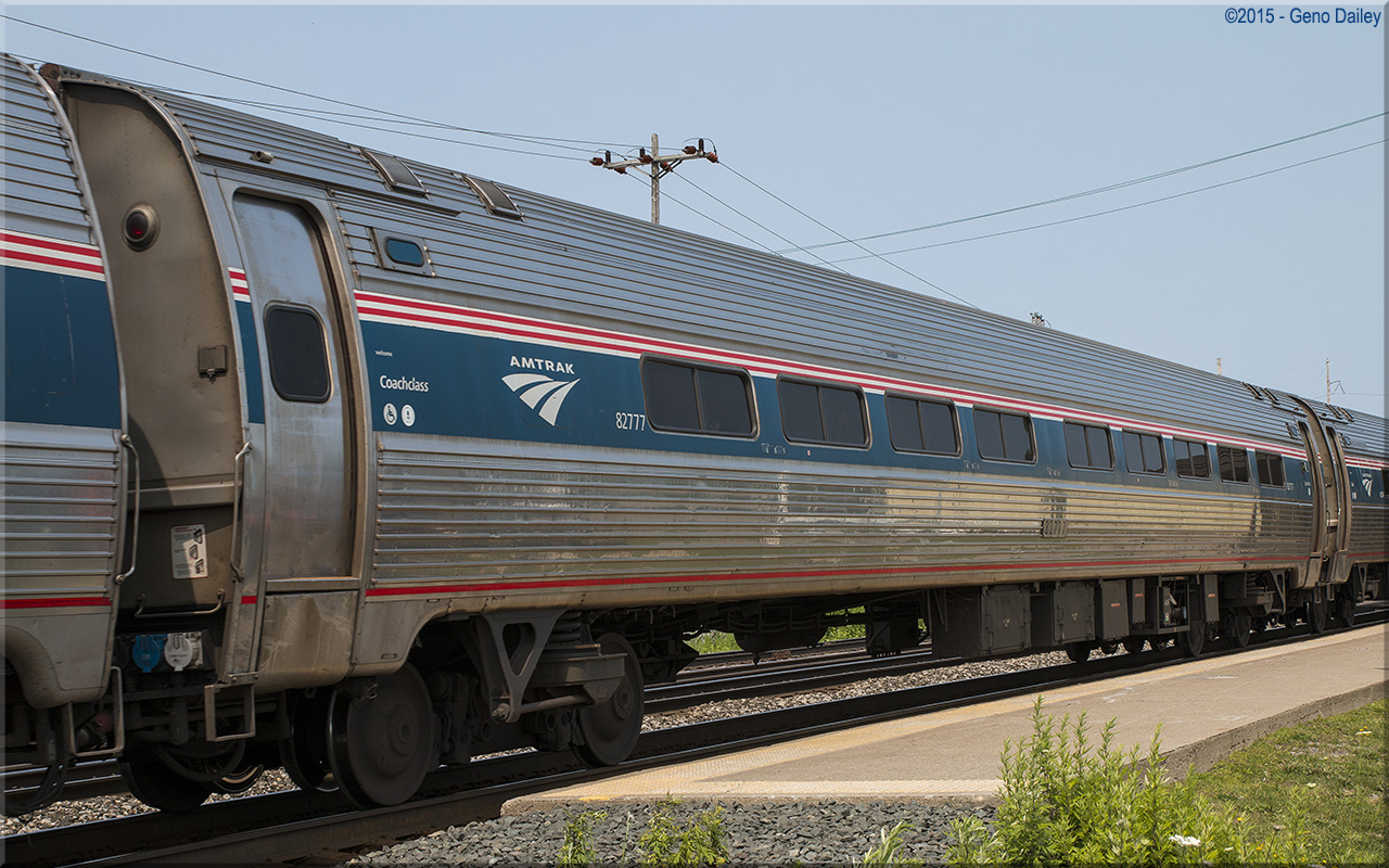 Built as a standard 84 seat Coach in December 1976 and numbered 21214. Trainline-equipped for push-pull operation and converted to a Capstone car with 72 seats in November 2009 and renumbered 82777. Historical information about this car provided by www.amtrakbythenumbers.com. |