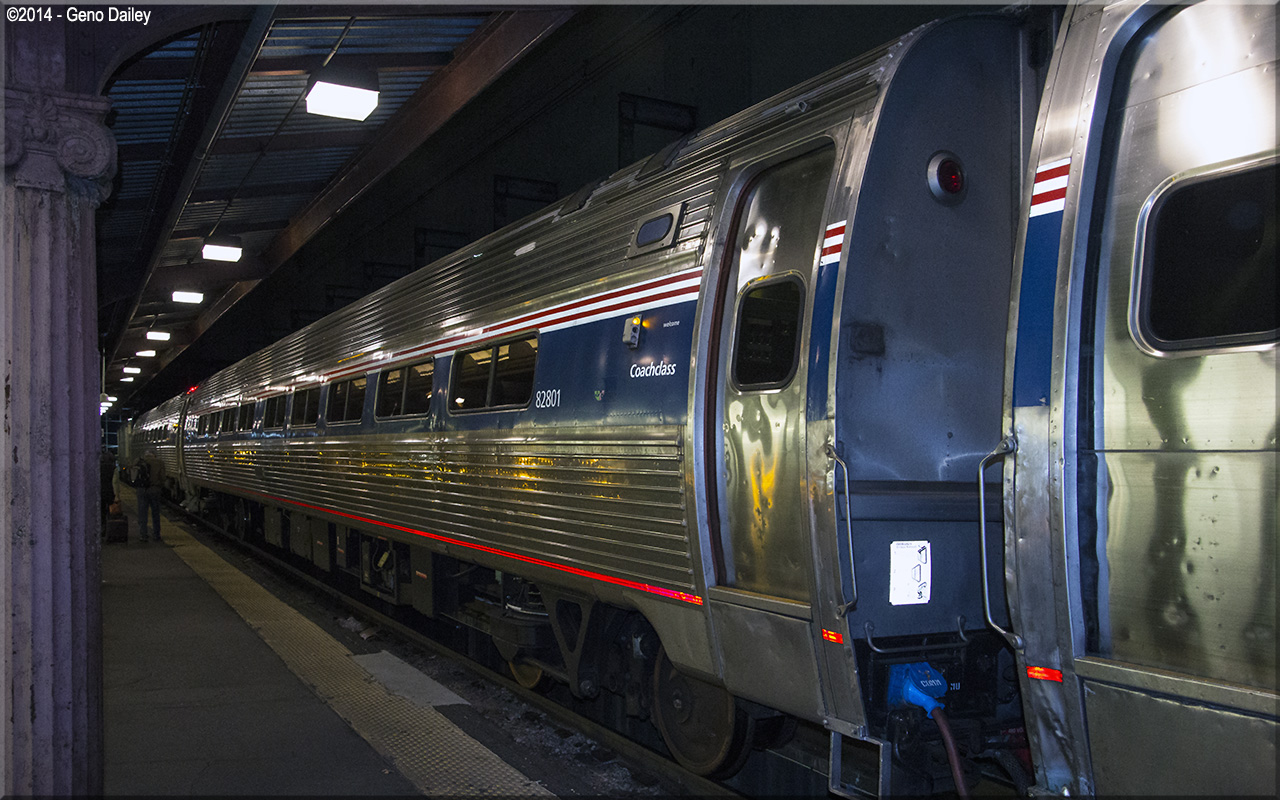 Built as a long-distance coach with 60 seats and 2 dressing rooms in April 1977 and numbered 21857. Refurbished for Metroliner Service in May 1983 and renumbere 21957. Trainline-equipped for push-pull operation in February 1989 and renumbered 44957. Converted to a Capstone coach with 72 seats in September 2010 and renumbered 82801. Historical information about this car provided by www.amtrakbythenumbers.com. |