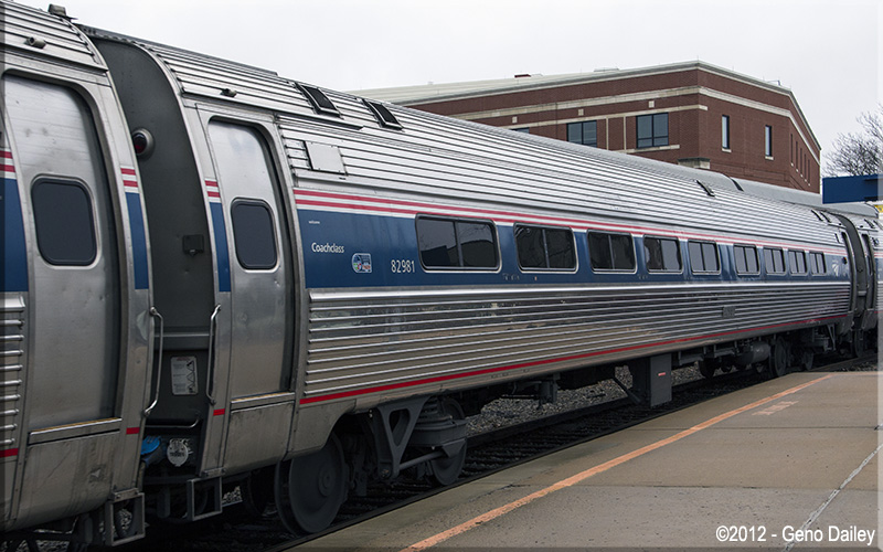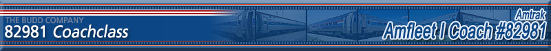 Built as an Amdinette featuring 8 4-place booths, a snack bar, and 23 coach seats in November 1976 and numbered 20220. Trainline equipped for push-pull operation and converted to all tables on both ends with a snack bar in the middle in February 1988 and renumbered 48220. Converted to a coach using American Recovery & Reinvestment Act (Economic Stimulus) Funds in September 2011 and renumbered 82981. Car is now a Capstone car featuring 72 seats. Information about the history of this car provided by