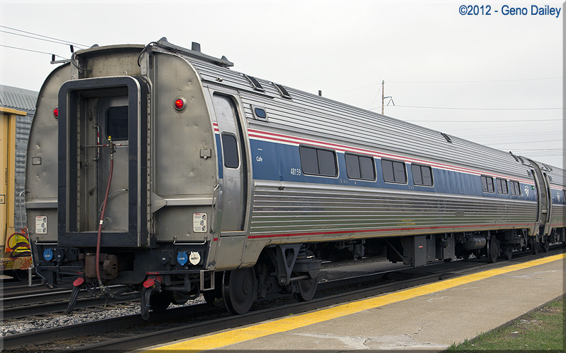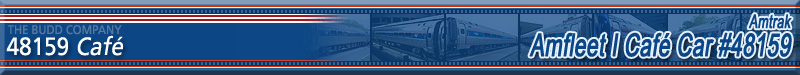 Built in January 1977 as an Amclub with 18 club seats, snack bar and 23 coach seats and numbered 20146. Trainline-equipped for push-pull service in February 1989 and renumbered 48146. Converted to a club-dinette with 18 club seats and 6 four-place booths in February 1995 and renumbered 48159. Information about the history of this car provided by