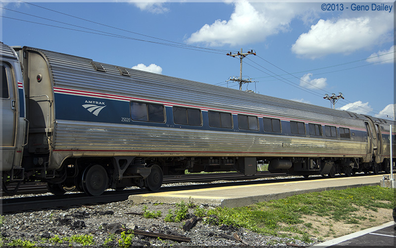 This car was originally numbered 25020, then in 2002 was renumbered 26020 and converted for use in Business Class service on the Carolinian as well as the Silver Palm. In 2004, the car was converted back to its original configuration and fitted with a baggage tower, and renumbered back to 25024. Information about the history of this car provided by