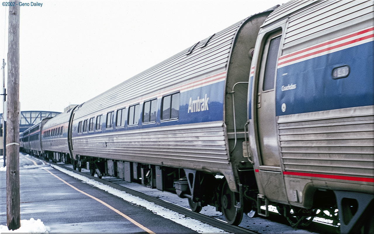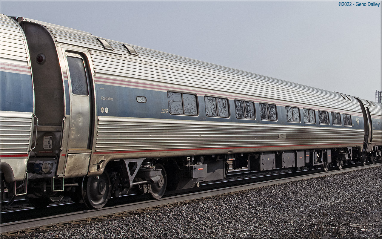 Built by Budd as a 59 seat long-distance coach in August 1982 and numbered 25059. The single seat was located near the the accessible restroom in the vestibule end of the car for use by a physically challenged passenger. The single seat has since been removed and a normal double-seat is now available and today these cars are equipped with a total of 58 seats. Historical information about this car provided by www.amtrakbythenumbers.com. |