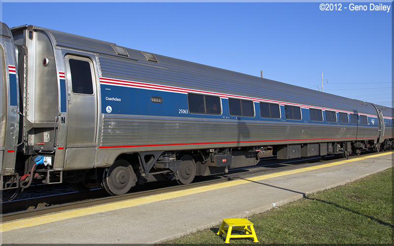 Built as a 59 seat coach in August 1982. A baggage tower was installed in 1985 with the car being renumbered 26063. Eventually, the car was restored to its original configuration and was renumbered back to 25063 in 1991. Information about the history of this car provided by