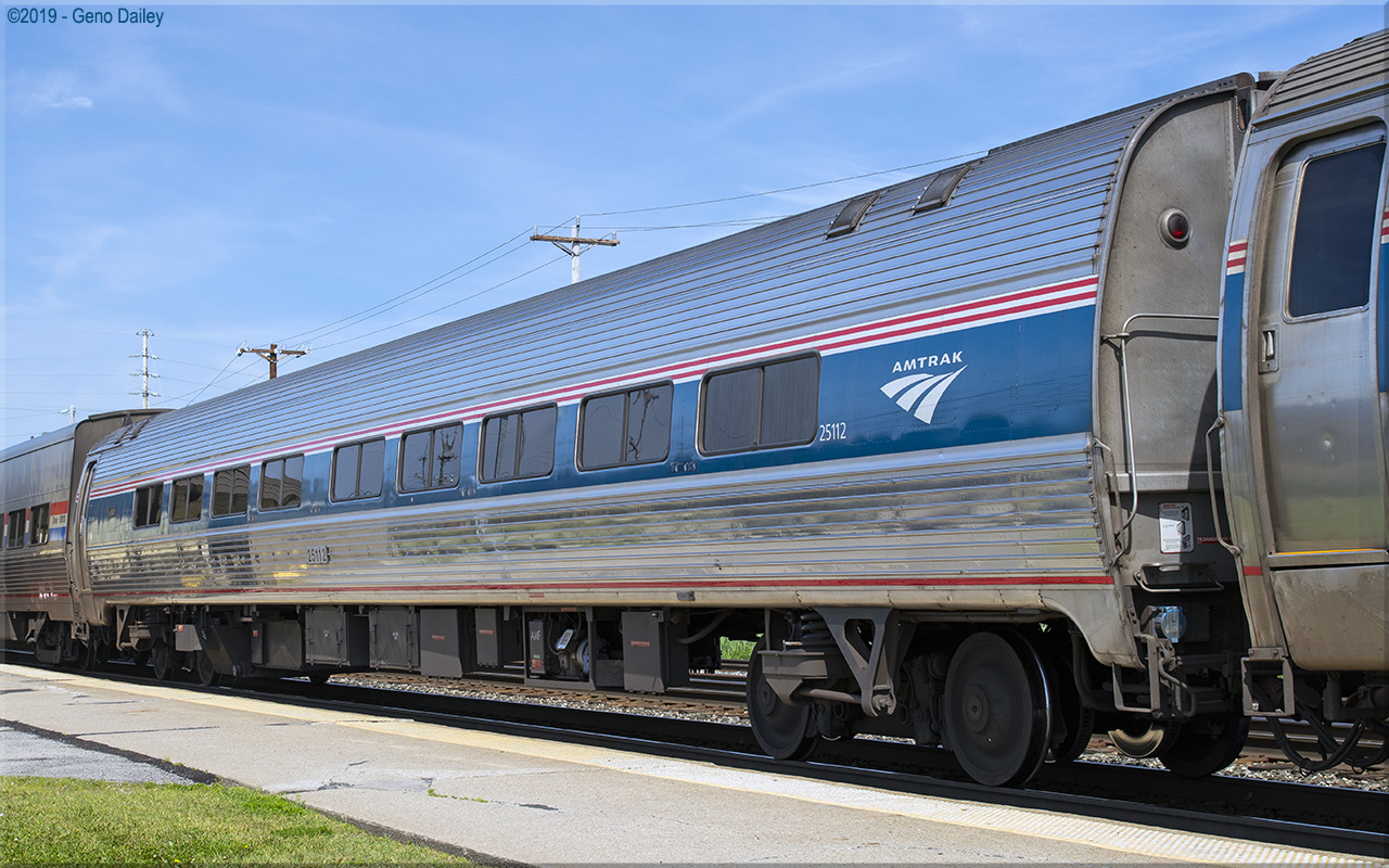 Built by Budd as a 59 seat long-distance coach in March 1983 and numbered 25112. The single seat was located near the the accessible restroom in the vestibule end of the car for use by a physically challenged passenger. The single seat has since been removed and a normal double-seat is now available and today these cars are equipped with a total of 58 seats. Historical information about this car provided by www.amtrakbythenumbers.com. |