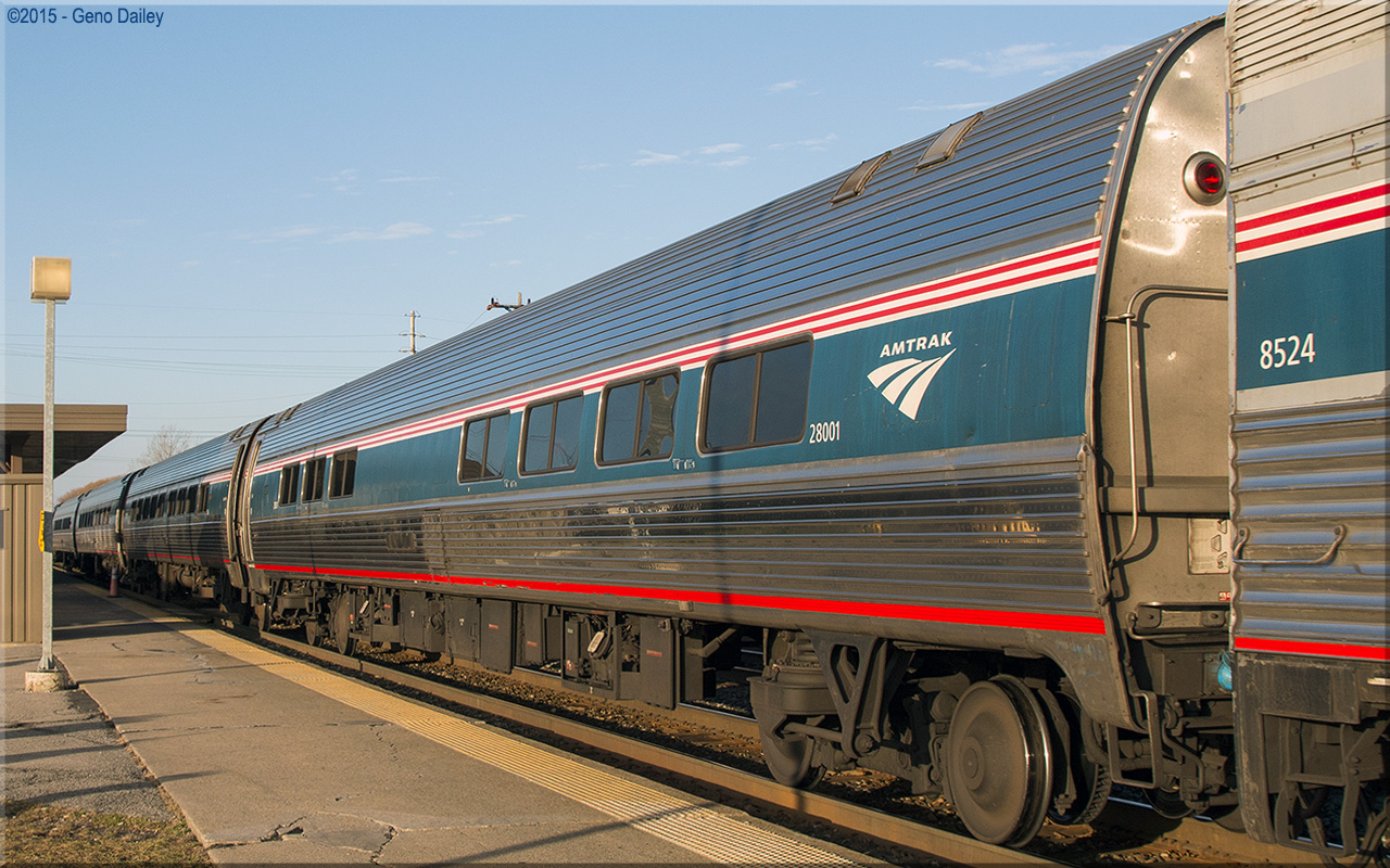 Built by Budd in February 1981 with an off-center snack bar with 10 4-place booths on the long end and 17 seats in 1, 2, and 4 seat configurations on the short end near the restroom and vestibule. Converted to a "Diner-Lite" car in February 2008 which involved removal of 3 tables on the long end, replaced by a conductor's office and storage space. The short end of the car received 19 seats arranged in two and four-seat booths. A small cooking facility was constructed in the car so these cars could be used as dining cars. Historical information about this car provided by www.amtrakbythenumbers.com. |