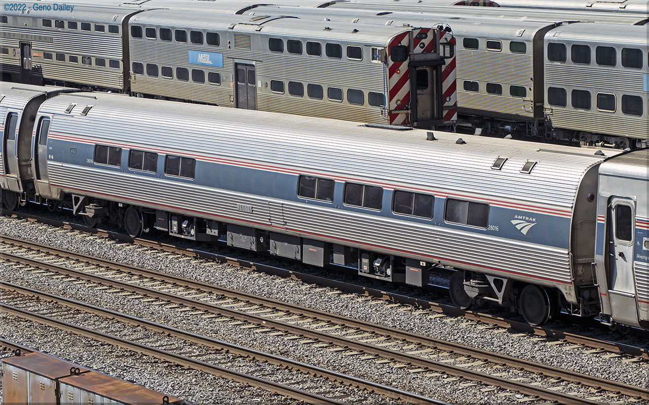 Built by Budd in December 1982 with an off-center snack bar with 10 4-place booths on the long end and 17 seats in 1, 2, and 4 seat configurations on the short end near the restroom and vestibule. Converted to a "Diner-Lite" car in Octrober 2006 which involved removal of 3 tables on the long end, replaced by a conductor's office and storage space. The short end of the car received 19 seats arranged in two and four-seat booths. A small cooking facility was constructed in the car so these cars could be used as dining cars. Historical information about this car provided by www.amtrakbythenumbers.com. |