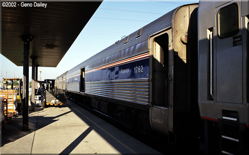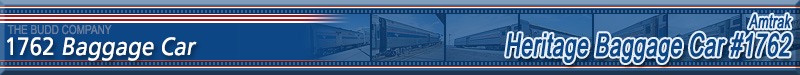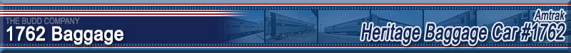 This car was built as a 44 seat coach for the Southern Pacific in 1954. Conveyed to Amtrak in 1971 and numbered 4433, the car operated for several years as a coach having been converted to HEP from Steam Heat in January 1981 and renumbered 4009. The car was converted into a Baggage/Mail car in January 2001 with the interior gutted and the windows plated over with a single sliding door installed in the center of the car on each side. With this conversion, the car was renumbered to 1762. The car did retain its original vestibule on one end. Historical Information about this car provided by