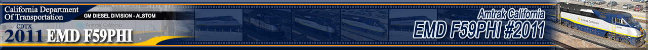 Built by General Motors Diesel Division as a kit that was then assembled by Alstom in 2001 and numbered 2011. Owned by the State of California, these units operate on the state-sponsored Capitol Corridor and San Joaquin routes. Historical information about this locomotive provided by www.amtrakbythenumbers.com. |