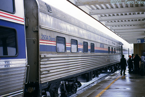 10/6 Sleeper for Union Pacific and converted to a Crew Dorm after years of service as a Sleeper on Amtrak. Retired at the end of 2006, it has been since reactivated, renumbered 10020 and used for special services. |