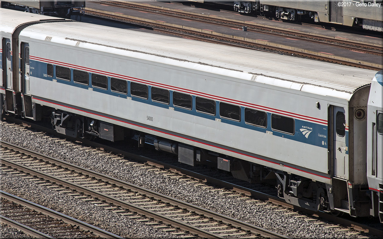 Built by Bombardier as an 82 seat coach in 1989 and numbered 54000. Historical information about this car provided by www.amtrakbythenumbers.com. |