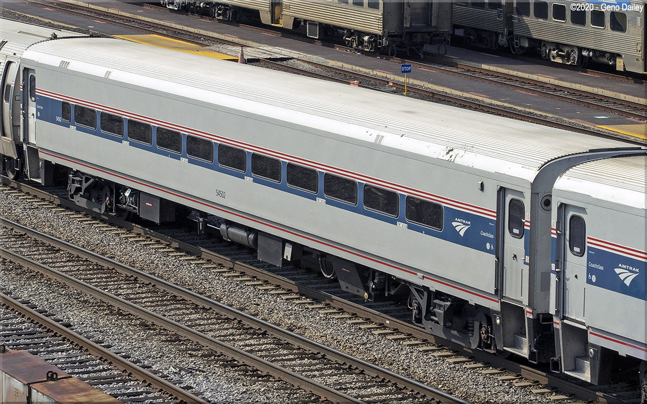 Built by Bombardier as an 72 seat ADA-compliant coach in 1989 and numbered 54502. Converted to a 60 seat ADA coach in 2001 and renumbered 51500. Converted back into a 72 seat ADA coach in in June 2008 and renumbered back to 54502. Historical information about this car provided by www.amtrakbythenumbers.com. |