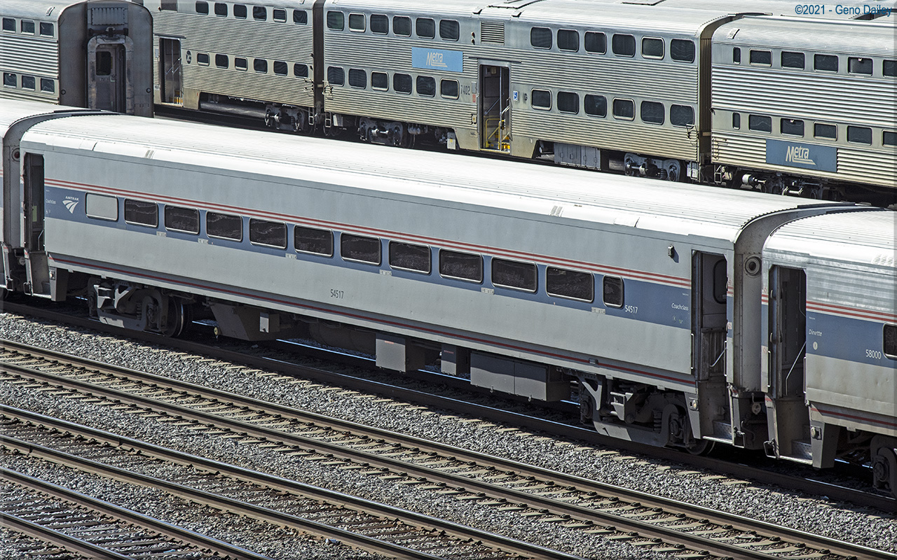 Built by Bombardier as an 82 seat coach in 1989 and numbered 54017. Converted to an ADA-compliant 68 seat coach in February 1996 and renumbered 54517. Historical information about this car provided by www.amtrakbythenumbers.com. |