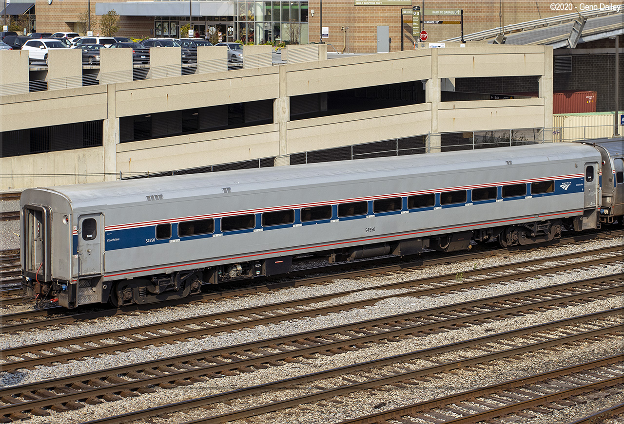 Built by Bombardier as a 76 seat coach in 1989 and numbered 54050. Converted to a 68 seat ADA coach in August 1996 and renumbered 54550. Historical information about this car provided by www.amtrakbythenumbers.com. |