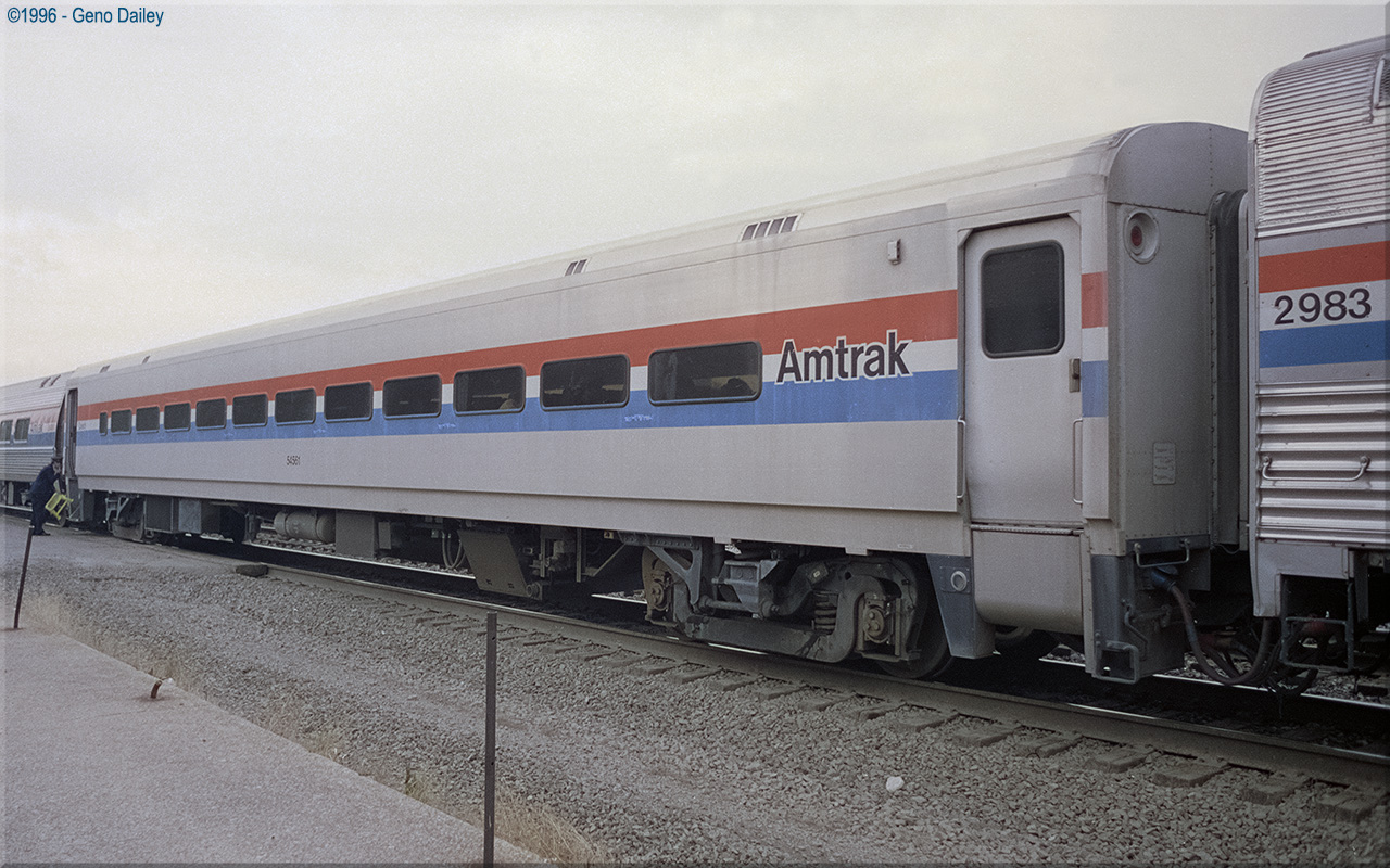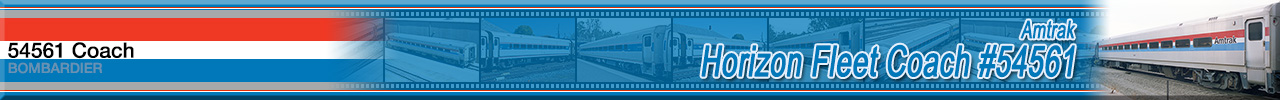 Built by Bombardier as a 76 seat coach in 1989 and numbered 54061. Converted to a 68 seat ADA coach in July 1996 and renumbered 54561. This coach has the distinction of being the very first Amtrak coach I ever rode in on my very first Amtrak trip on July 23rd, 1996! This was the only photo I took of the train that morning after arriving in Sandusky. Historical information about this car provided by www.amtrakbythenumbers.com. |