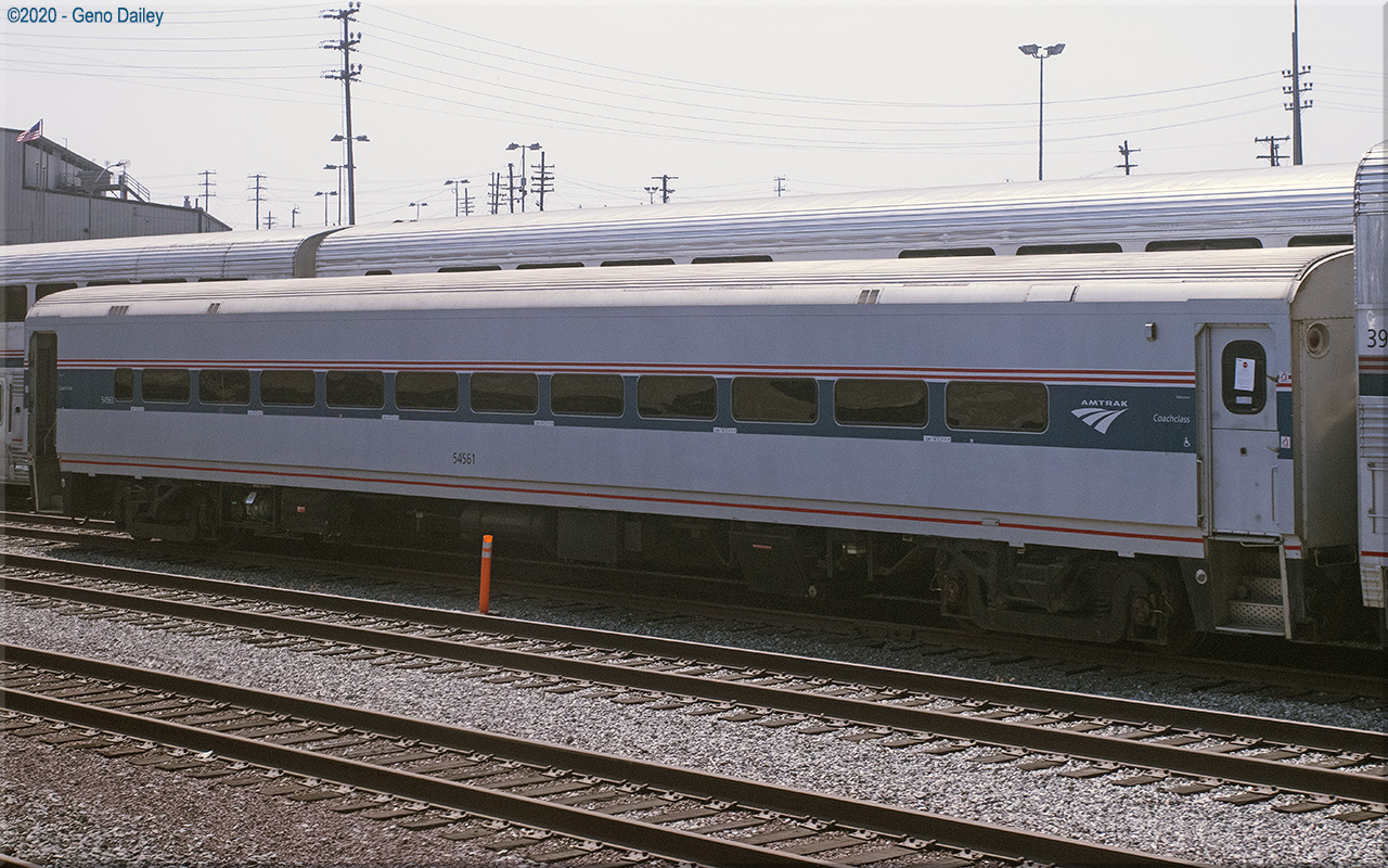 Built by Bombardier as a 76 seat coach in 1989 and numbered 54061. Converted to a 68 seat ADA coach in July 1996 and renumbered 54561. in reference to the top photo of this car, I find it amazing that it would take 24 years for me to photograph this car a second time knowing it was the first coach I ever rode in on Amtrak! Historical information about this car provided by www.amtrakbythenumbers.com. |