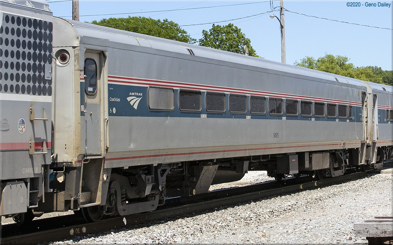 Built by Bombardier as a 82 seat coach in 1989 and numbered 540003. Converted to a 68 seat ADA coach in March 1996 and renumbered 54575. Historical information about this car provided by www.amtrakbythenumbers.com. |