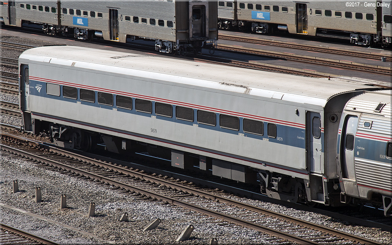 Built by Bombardier as an 82 seat coach in 1989 and numbered 54007. Converted to an ADA-compliant 68 seat coach in June 1996 and renumbered 54579. Historical information about this car provided by www.amtrakbythenumbers.com. |