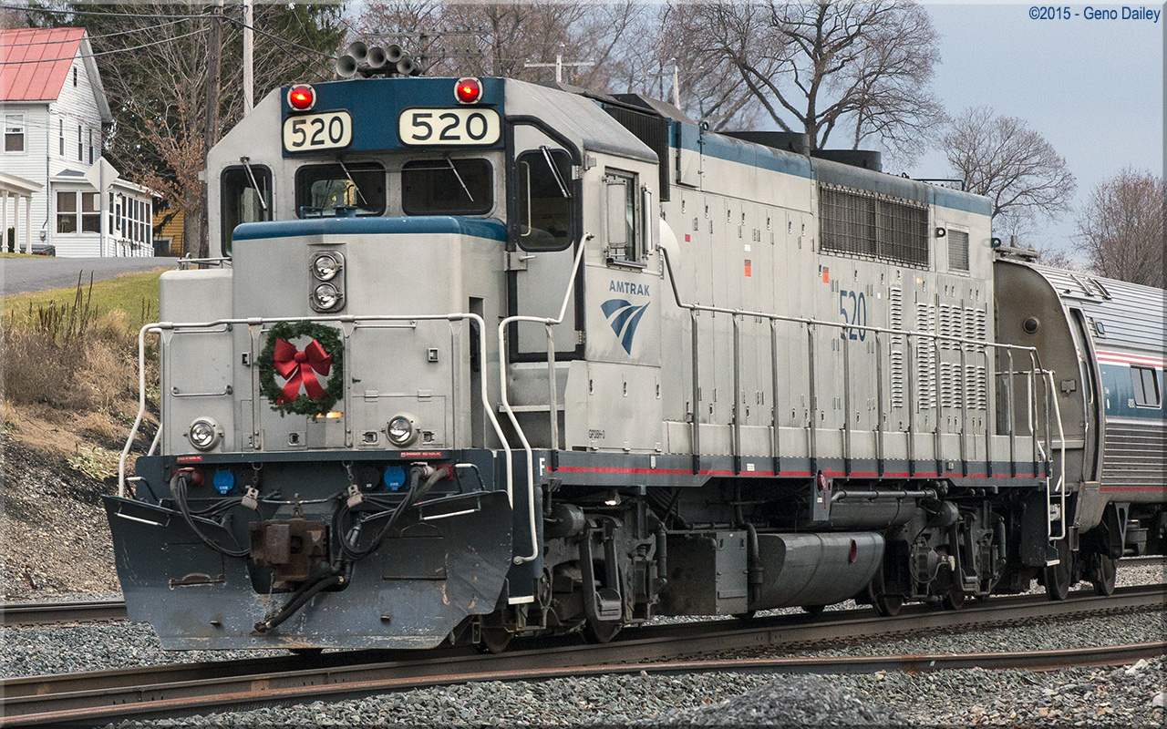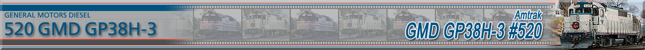 Built by General Motors Diesel in October 1966 for GO Transit, which is Toronto, Ontario Canada's commuter rail system and originally numbered 500. It would be renumbered 9800 and 600 before being purchased by Amtrak in October 1988 and being renumbered 192. Renumbered to 520 in 2001 as Amtrak has a GE P42DC that now has the number 192. Rebuilt by Norfolk Southern Railway at Altoona, PA in October 2004 and is now designated as a GP38H-3. Historical information about this locomotive provided by www.amtrakbythenumbers.com. |