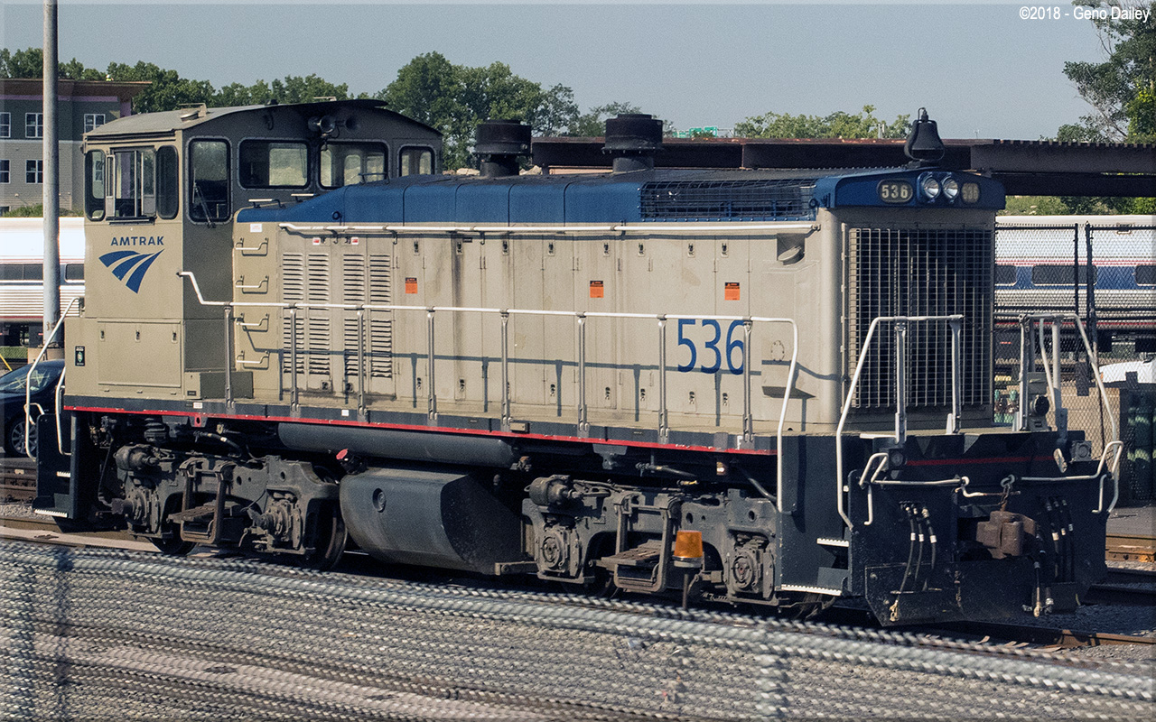 Built by General Motors Electro-Motive Division in May 1975 for the Pittsburgh & Lake Erie Railroad and numbered 1593. Under Amtrak ownership, it was numbered 536. Historical information about this locomotive provided by www.amtrakbythenumbers.com. |