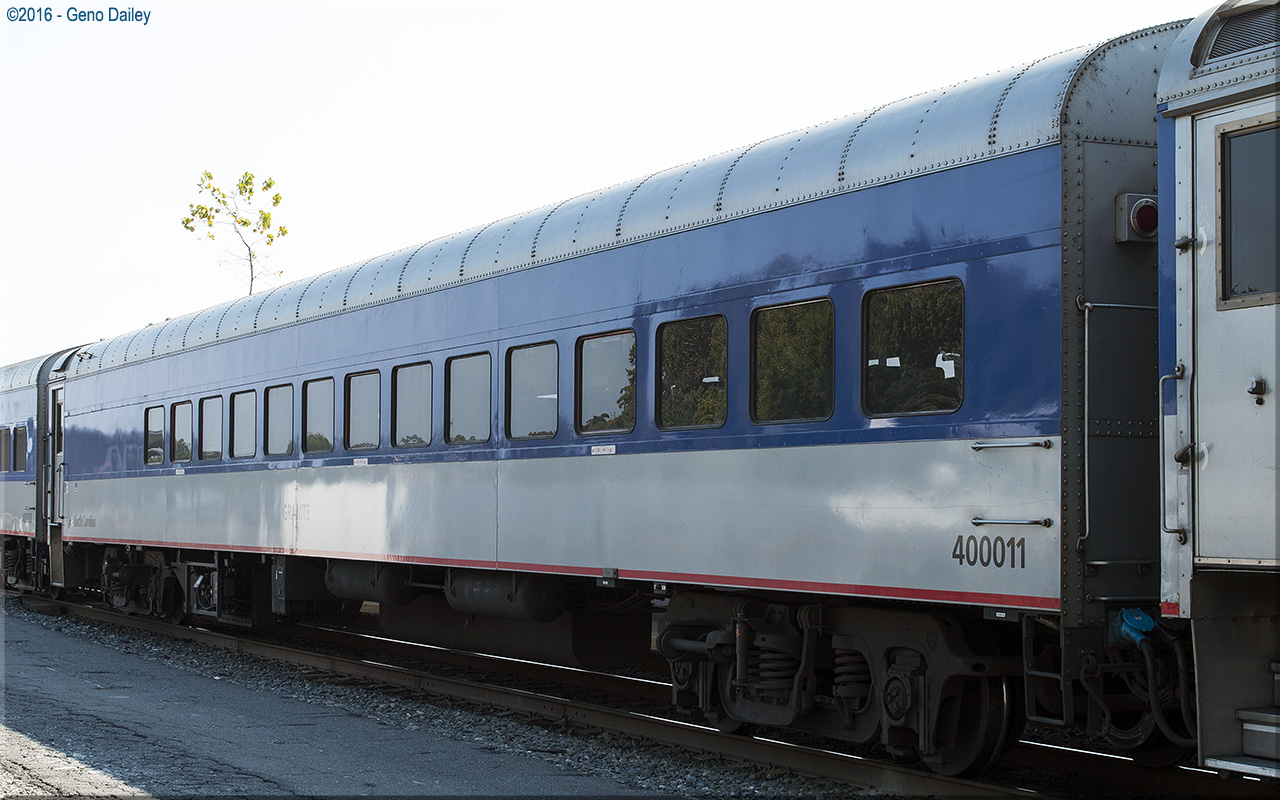 Built by St. Louis Car in 1964 as a 45 seat coach for the Union Pacific Railroad and numbered 5532. Conveyed to Amtrak in 1971 and numbered 4572. Converted to Head-End Power from Steam Heat in August 1979 and renumbered 4610. Converted to a table car in January 1984 and renumbered 8603. Car was placed up for sale in February 2002 and was eventually purchased by the State of North Carolina and converted into a 56 seat coach with refurbishment of the car being done for NCDOT by the Delaware Car Company. Under NCDOT ownership, the car would be renumbered 400011 and named "Granite". Historical information about this car provided by www.amtrakbythenumbers.com and the North Carolina Department Of Transportation. |