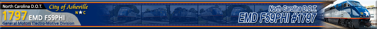 Built by General Motors Electro Motive Division in 1998, and named "City of Asheville", these units are owned by the State of North Carolina and are used on Amtrak's Piedmont Service between Charlotte & Raleigh, NC. Historical information about this locomotive provided by www.amtrakbythenumbers.com. |