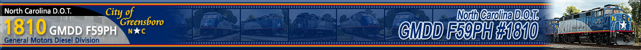 Built by General Motors Diesel Division in 1988 for Toronto's GO Transit and numbered 529. Purchased by the State of North Carolina in 2010 and rebuilt by American Motive Power, renumbered 1810 and named "City of Greensboro". These units are used on Amtrak's Piedmont Service between Charlotte & Raleigh, NC. Historical information about this locomotive provided by www.amtrakbythenumbers.com. |