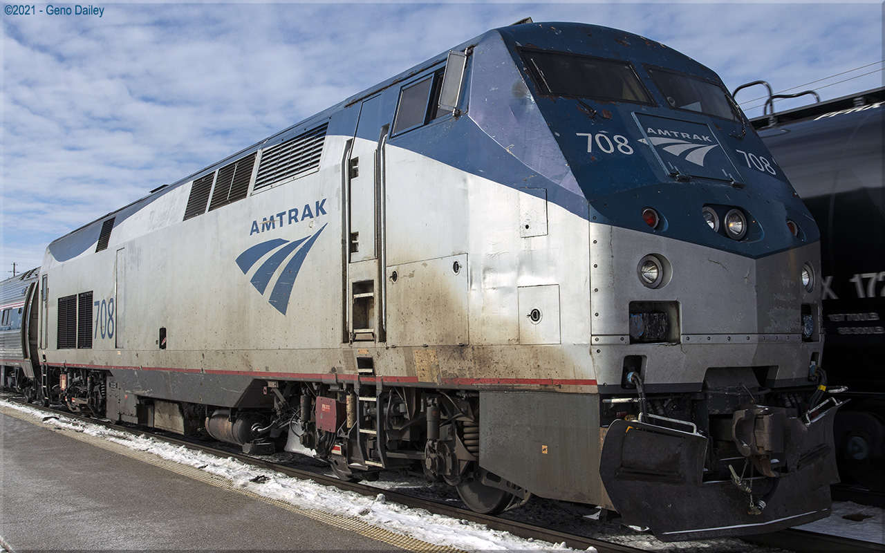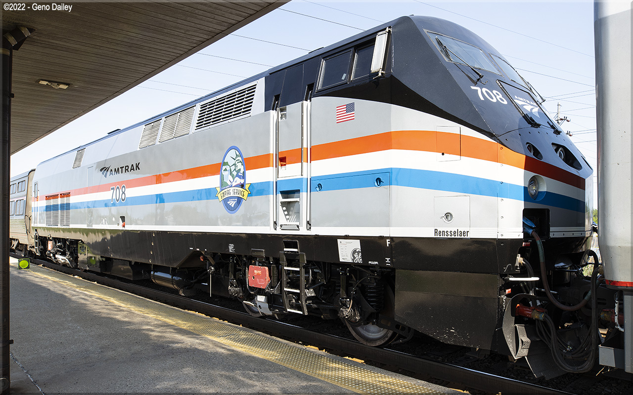 Built by General Electric Transportation Systems in August 1995 and numbered 708. This series of locomotives (a total of 18 would be built) were built to replace the EMD FL9's. These "Dual-Mode" units were built to operate on diesel power above-ground and on third-rail electric power when in the tunnels going into New York's Penn Station. This unit is also equipped with an escape hatch similar to Metro-North Railroad's P32's that operate into Grand Central Terminal since Amtrak ran service there in 2018 due to trackwork at Penn Station. Historical information about this locomotive provided by www.amtrakbythenumbers.com. |
