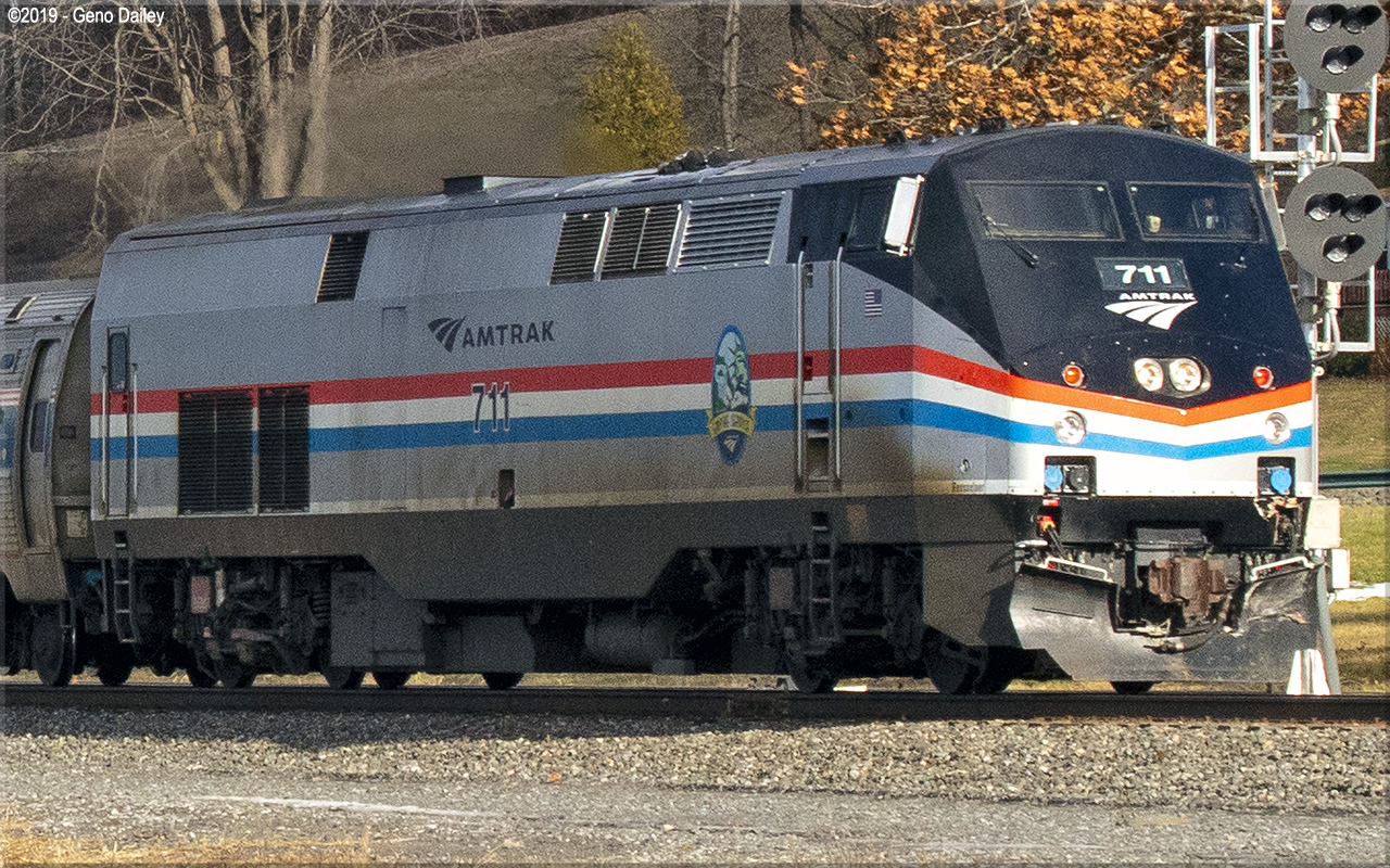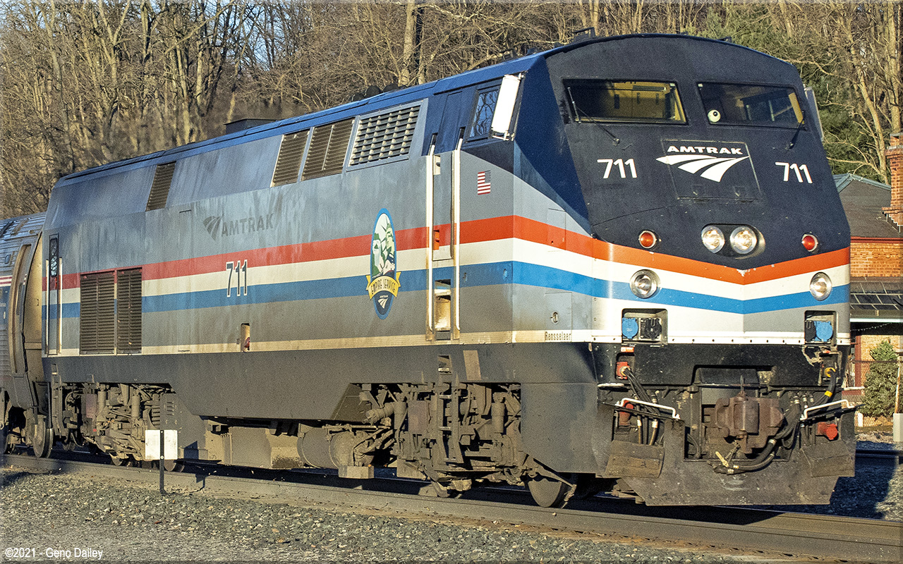 Built by General Electric Transportation Systems in January 1998 and numbered 711. This series of locomotives (a total of 18 would be built) were built to replace the EMD FL9's. These "Dual-Mode" units were built to operate on diesel power above-ground and on third-rail electric power when in the tunnels going into New York's Penn Station. With funding provided by the State of New York, these units have been or will be repainted into Phase III with a special "Empire Service" emblem on each side. This unit is also equipped with an escape hatch similar to Metro-North Railroad's P32's that operate into Grand Central Terminal since Amtrak ran service there in 2018 due to trackwork at Penn Station. Historical information about this locomotive provided by www.amtrakbythenumbers.com. |