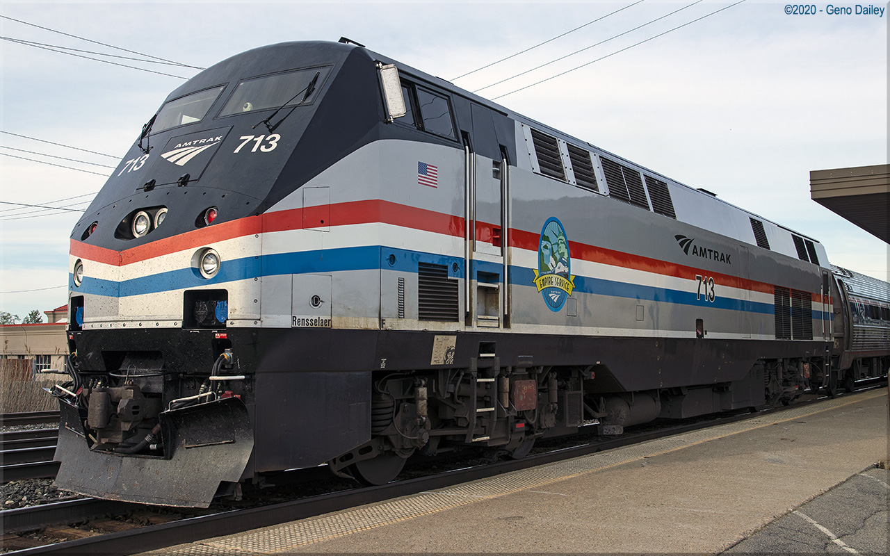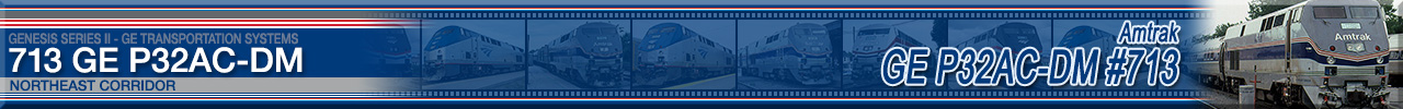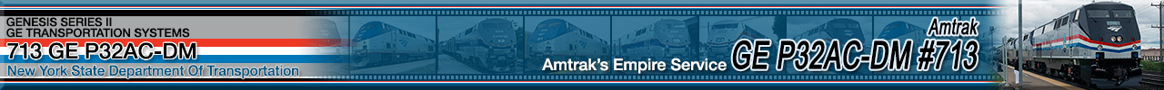 Built by General Electric Transportation Systems in January 1998 and numbered 713. This series of locomotives (a total of 18 would be built) were built to replace the EMD FL9's. These "Dual-Mode" units were built to operate on diesel power above-ground and on third-rail electric power when in the tunnels going into New York's Penn Station. With funding provided by the State of New York, these units have been or will be repainted into Phase III with a special "Empire Service" emblem on each side. This unit is also equipped with an escape hatch similar to Metro-North Railroad's P32's that operate into Grand Central Terminal since Amtrak ran service there in 2018 due to trackwork at Penn Station. Historical information about this locomotive provided by www.amtrakbythenumbers.com. |