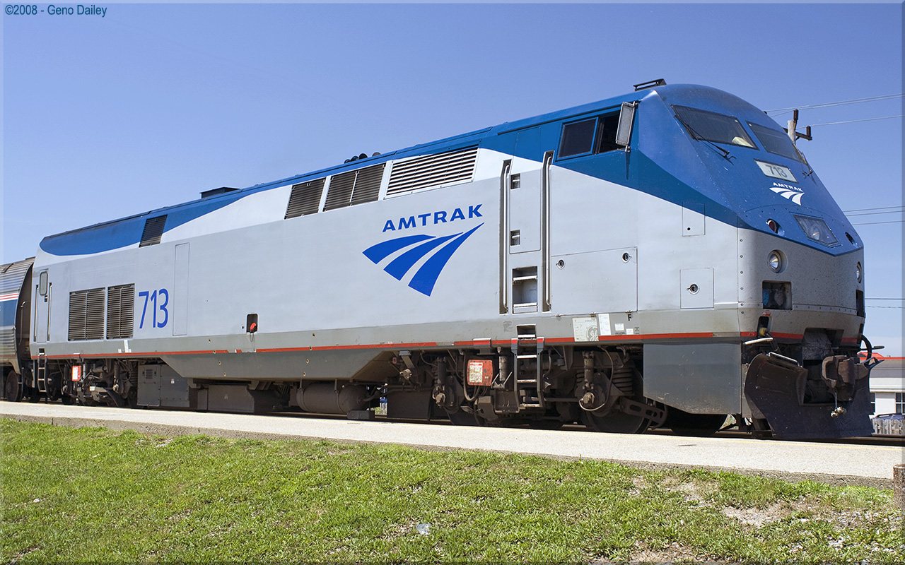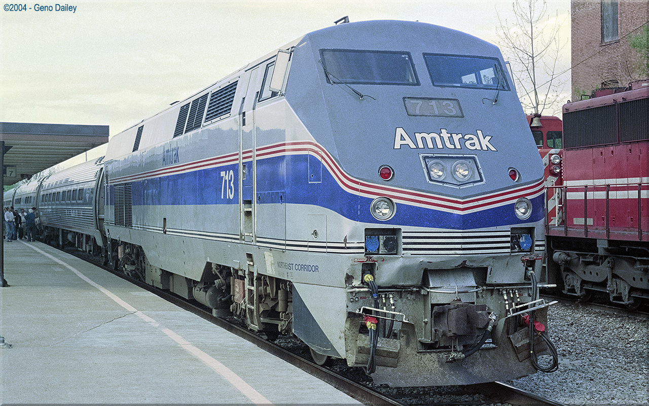 Built by General Electric Transportation Systems in January 1998 and numbered 713. This series of locomotives (a total of 18 would be built) were built to replace the EMD FL9's. These "Dual-Mode" units were built to operate on diesel power above-ground and on third-rail electric power when in the tunnels going into New York's Penn Station. Historical information about this locomotive provided by www.amtrakbythenumbers.com. |