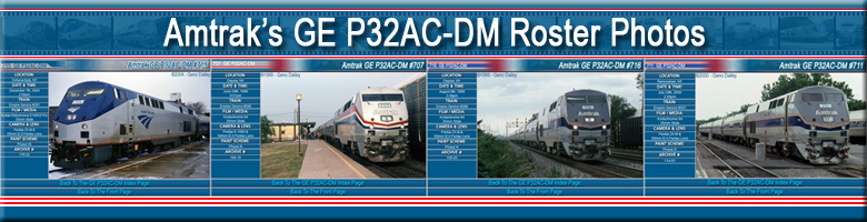GENERAL: Amtrak owns 18 of these units numbered 700-717. They were built by GE Transportation Systems in Erie, PA with the first order (700-709) entering service in 1995 and the second order (710-717) in 1998. These units are designed to operate in 3rd Rail Electric Territory including the tunnels in and out of NY Penn Station, as well as operating on regular diesel power, thus the "DM" or "Dual-Mode" Designation. They were designed to replace aging EMD FL-9's that operated out of NY Penn Station. |