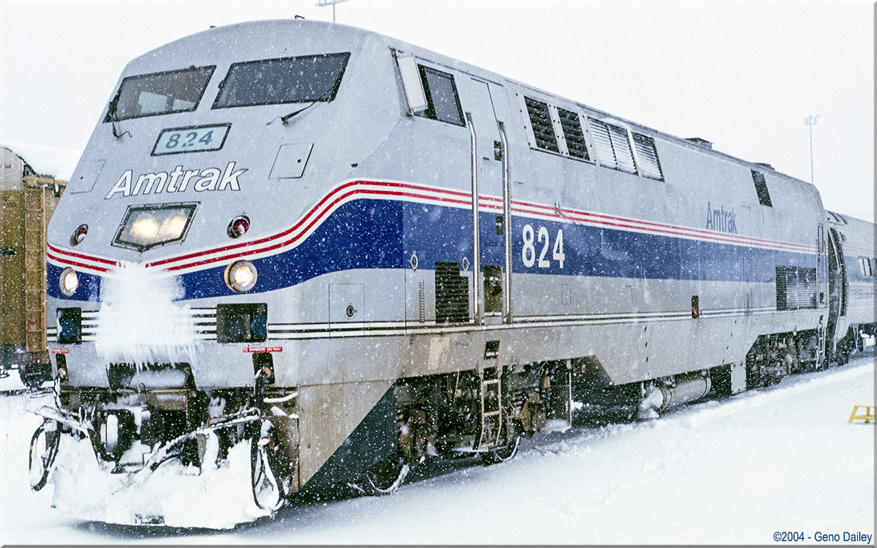 Built by General Electric Transportation Systems in September 1993 and numbered 824. This series of locomotives were also known as the Genesis Series I locomotives. This particular unit was eventually stored when Amtrak ended its Mail & Express business and in 2010 was rebuilt using American Recovery & Reinvestment Act (Economic Stimulus) funds. Historical information about this locomotive provided by www.amtrakbythenumbers.com. |