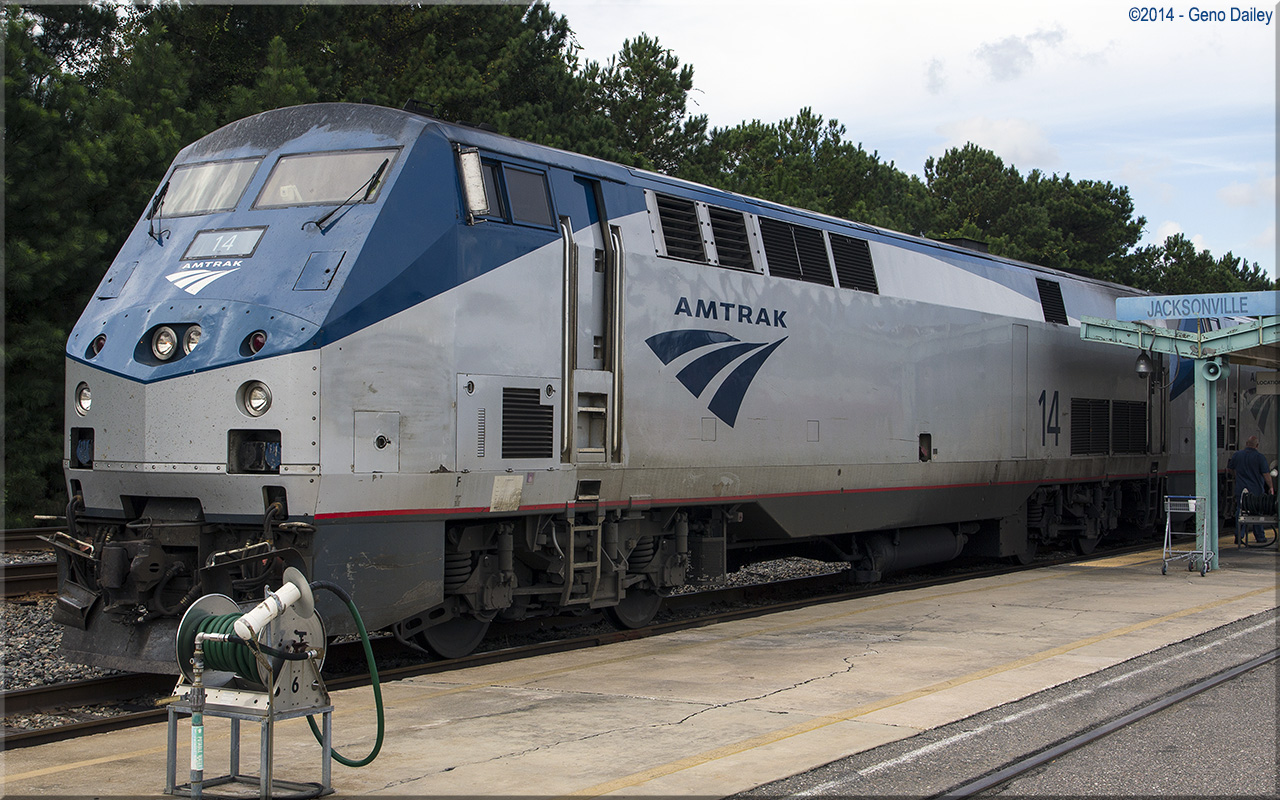 Built by General Electric Transportation Systems in September 1996 and numbered 14. This series of locomotives, also known as the Genesis Series II locomotives, were an upgraded version of the P40DC. Historical information about this locomotive provided by www.amtrakbythenumbers.com. |