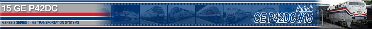 Built by General Electric Transportation Systems in October 1996 and numbered 15. This series of locomotives, also known as the Genesis Series II locomotives, were an upgraded version of the P40DC. Historical information about this locomotive provided by www.amtrakbythenumbers.com. |