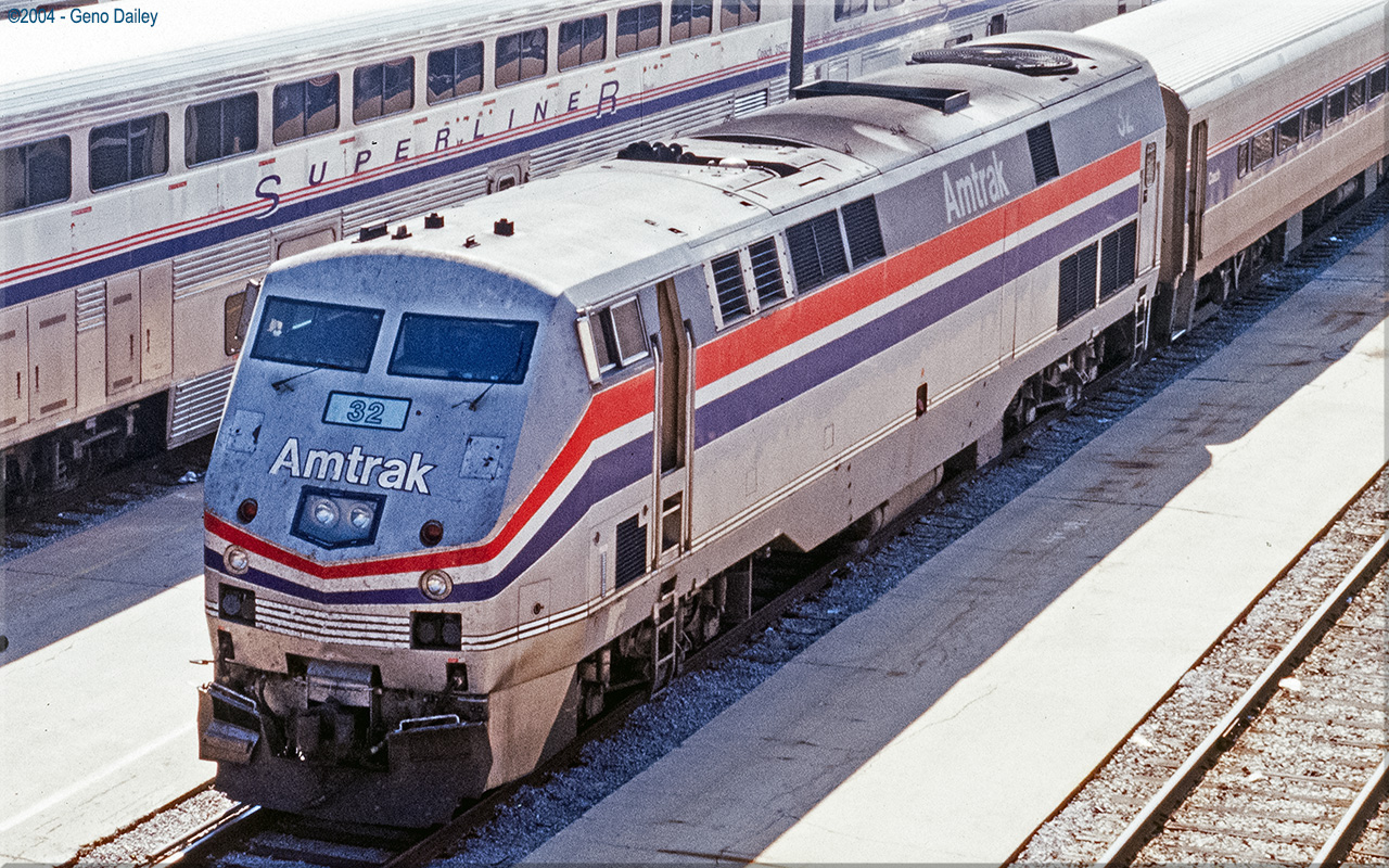 Built by General Electric Transportation Systems in December 1996 and numbered 32. This series of locomotives, also known as the Genesis Series II locomotives, were an upgraded version of the P40DC. Historical information about this locomotive provided by www.amtrakbythenumbers.com. |