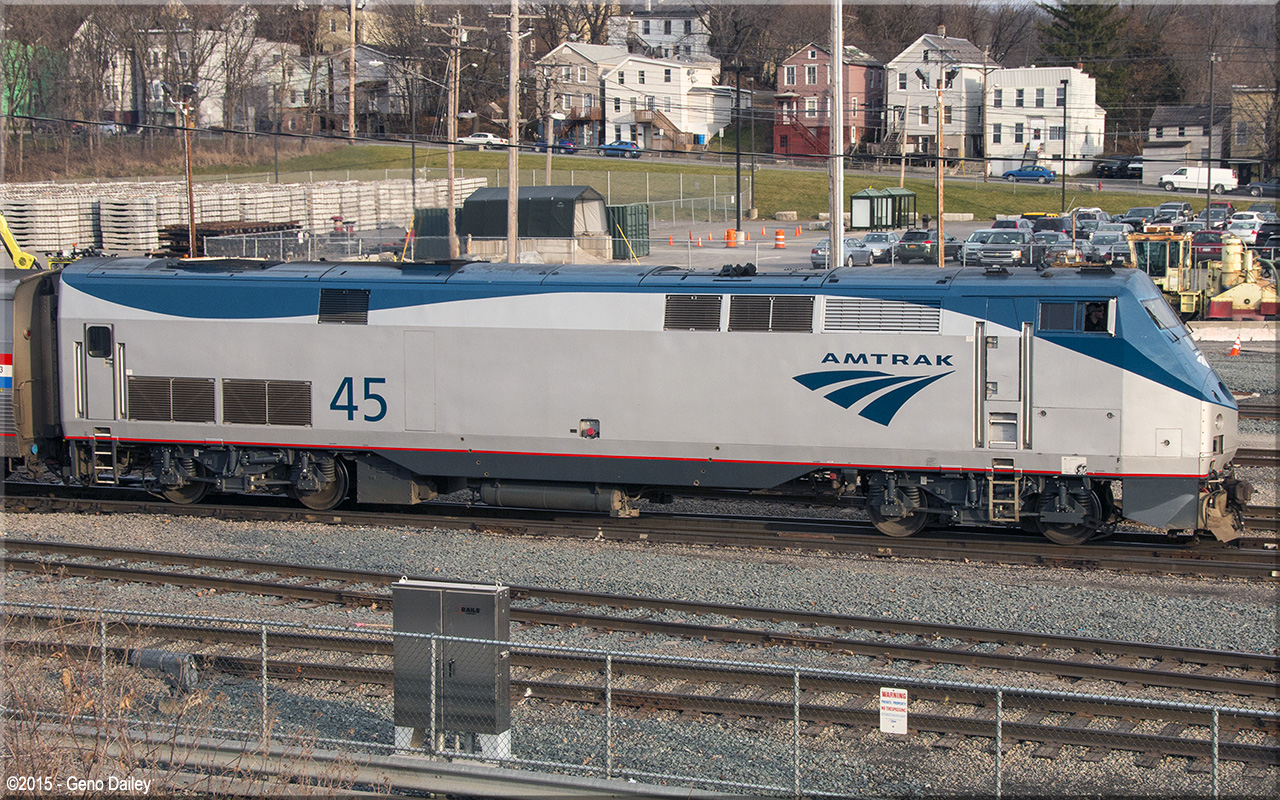 Built by General Electric Transportation Systems in January 1997 and numbered 45. This series of locomotives, also known as the Genesis Series II locomotives, were an upgraded version of the P40DC. Historical information about this locomotive provided by www.amtrakbythenumbers.com. |