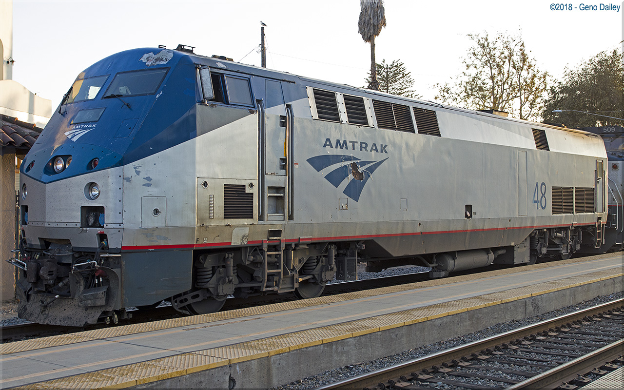 Built by General Electric Transportation Systems in January 1997 and numbered 48. This series of locomotives, also known as the Genesis Series II locomotives, were an upgraded version of the P40DC. Historical information about this locomotive provided by www.amtrakbythenumbers.com. |